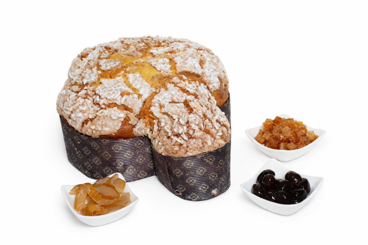 La Colomba Artigianale con impasto al Pistacchio contiene deliziosi pezzetti di frutti di bosco canditi e gocce di cioccolato bianco abbinati al pistacchio di Sicilia.